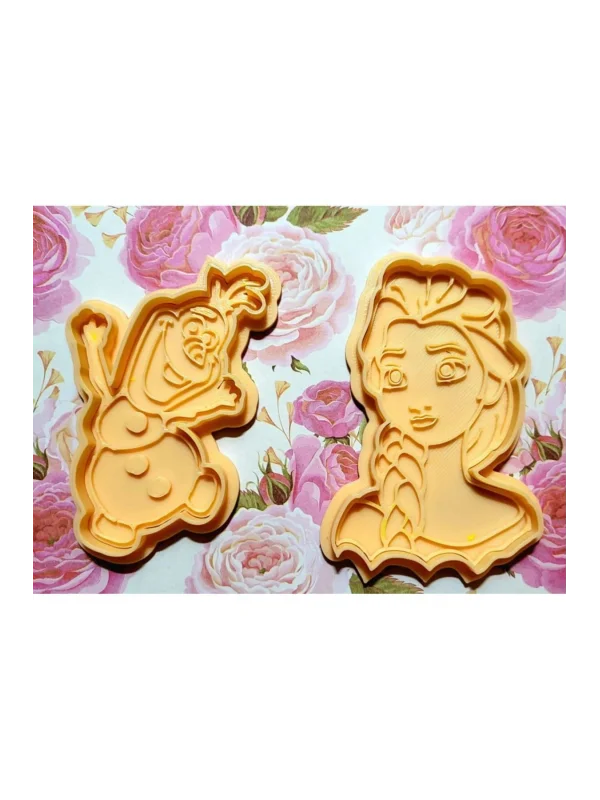 Frozen Elsa Olaf Kurabiye Kalıbı ve Baskısı Set, 2 Parçalı Kurabiye Kesici, Hamur Şekillendirici