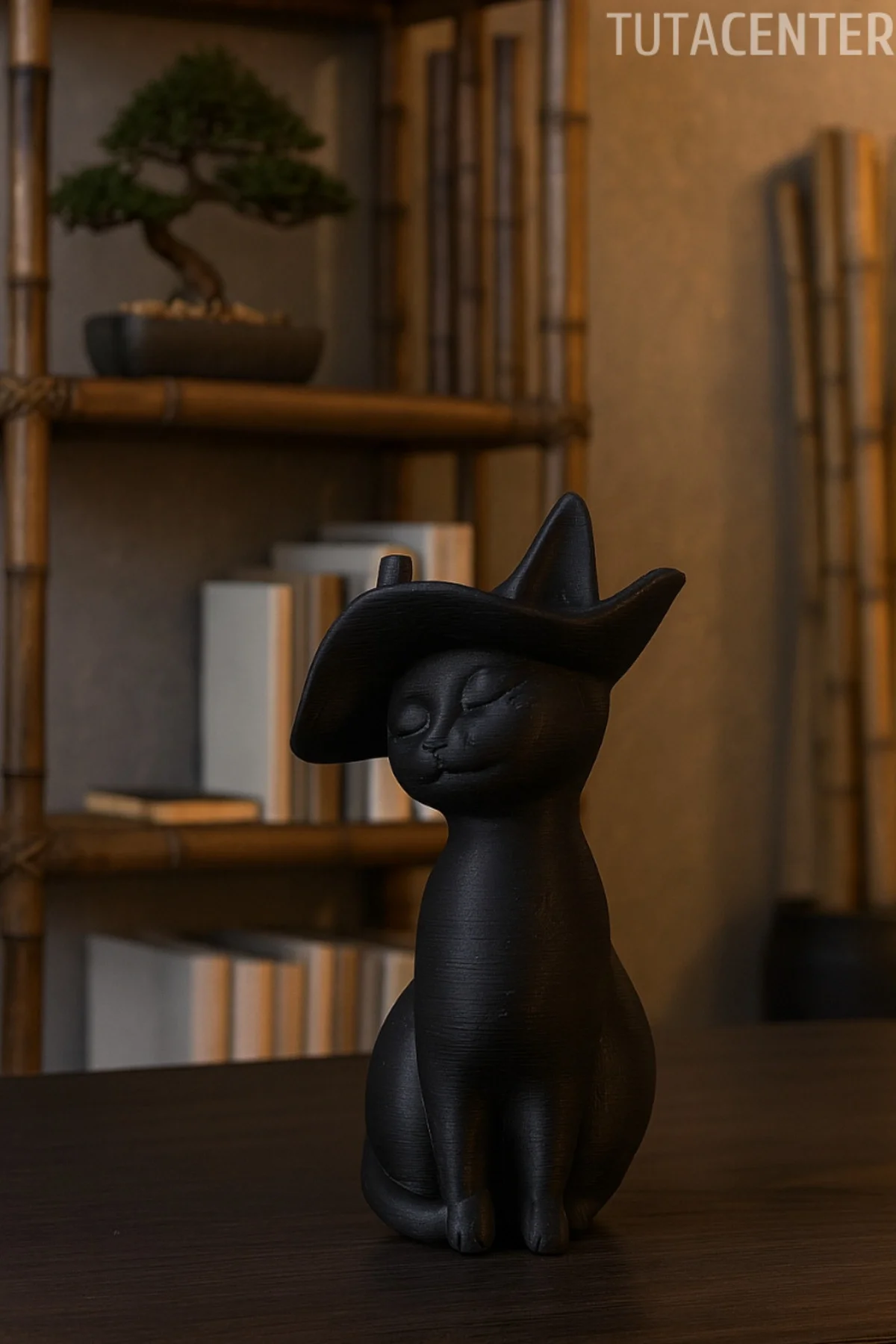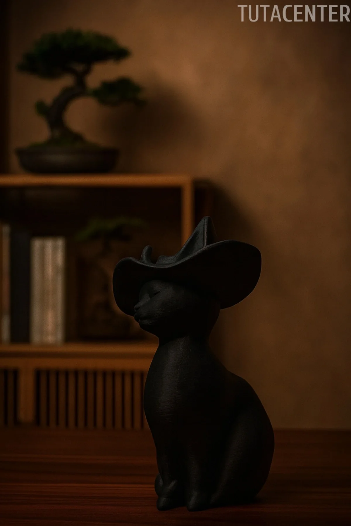 Uyuyan Sevimli Kedi Biblosu – Geometrik Tasarım, 20 cm, Dekoratif Kedi Figürü